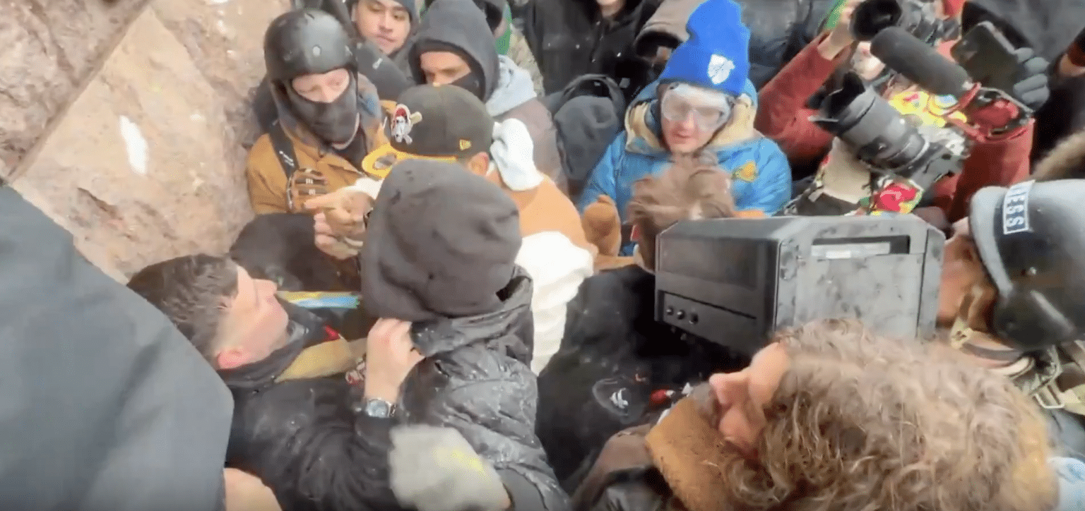 وفق ما أوردته وكالات أنباء أميركية، نظّم لانغ تجمعًا صغيرًا قرب مبنى بلدية مينابوليس. لم يتجاوز عدد أنصاره العشرات، بينما تجمع مئات المحتجين المناهضين له. الهتافات ارتفعت، ثم اقترب الحشدان، ثم اختفى الخط الفاصل بين التظاهر والمواجهة.